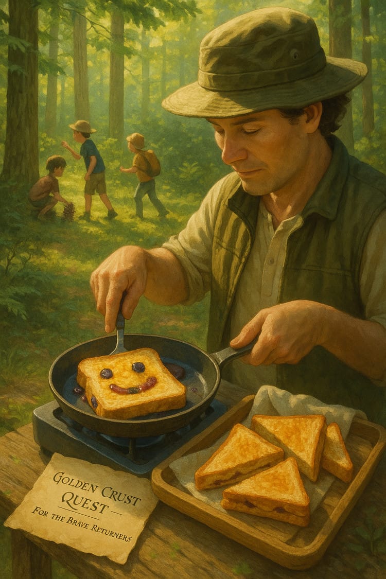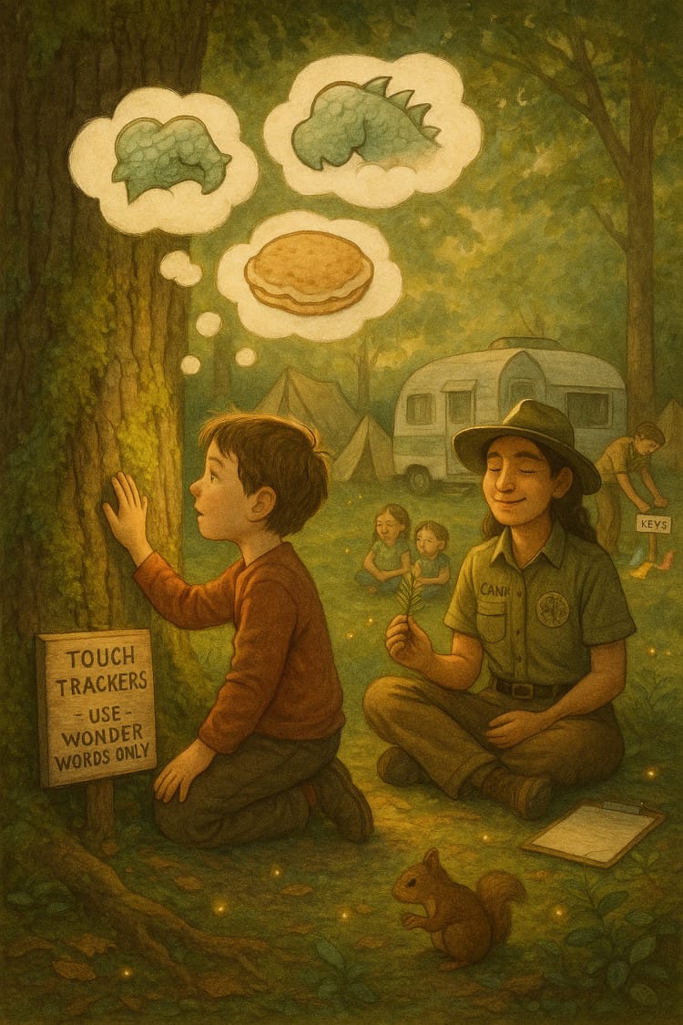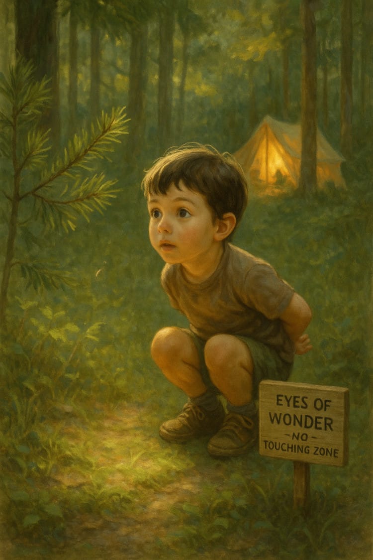 The tent is (mostly) upright. The marshmallows have been declared “found.” And somewhere behind the trees, a child is already barefoot and sticky.