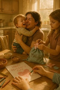 At the end of the day, parents reflect on their invisible work and love. This earns the family’s Mother’s Day Super Power Badge — a printable keepsake honoring real care, not polished pictures.